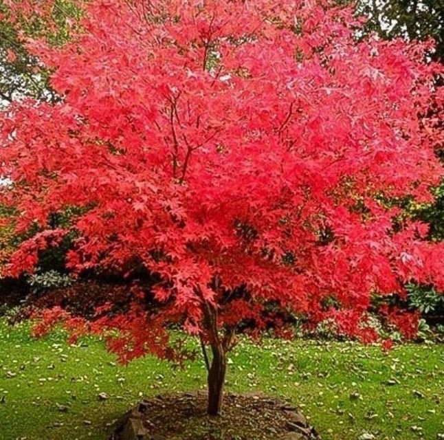 4-5 méter magasra növő, lassú növekedésű kis fa, vagy bokor. A levelei mélyen ötkaréjosak, zöldek, lombhulláskor skarlátvörösre színeződnek. Koronája ernyő formájú, többnyire szabálytalan. Az agyagos, homokos talajt kedveli. Félárnyékba ültessük. Nagy melegben sok vizet igényel, szereti a páradús környezetet.