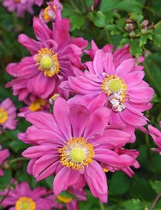 Az Anemone hybrida Bressingham Glow’ – japán szellőrózsa 60-90 cm magas, a nagy levéltömeg fölött sok szárat fejleszt. Gyökérsarjaival terjed. Lilás-rózsaszínű virágai laza bogernyőben nyílnak. Augusztustól novemberig virágzik. Hármasan összetett levelei szőlő-levelére hasonlítanak. A nyári szárazságot és a téli talajnedvességet rosszul viseli. Védett helyre, fal vagy kerítés mellé ültessük. Tápdús, humuszos talajt kedvel. Természethű, ligetes kertekbe ültessük. Vágóvirágnak is kitűnő.