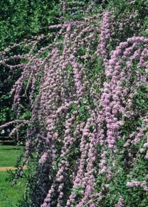 2-4 m magas, terebélyes, lombhullató cserje ívesen lehajló ágakkal. Illatos liláskék bugavirágzat, gömbölyded csomókban, júniusban nyílik. Napfényes helyet, mérsékelten száraz talajt igényel. A városi környezetet jól tűri. Közepes vízigényű. Tavasszal erősen vágjuk vissza, a virágzás fokozása érdekében. Kártevője nincs. Az elvirágzott vesszőket érdemes tőből kimetszeni.