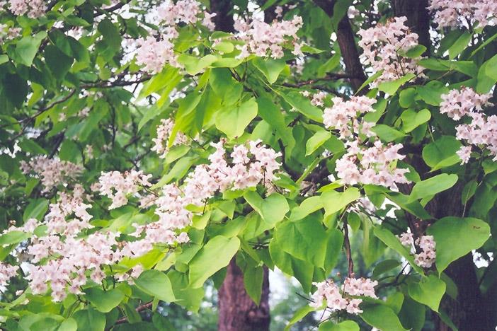 A Catalpa speciosa egy közepes méretű, lombhullató fa, mely 15-30 méter magasra és 12 méter szélesre nő. Észak Amerikából a Missisipi középső folyásától származó fafajta, mely mutatósabb, a nálunk ismeretnél. Levelei széles tojásdad alakúak és jellemzően 30 cm hosszú, 20 cm szélesek. Nagy bugákban nyíló fehér virágai harang alakúak, melyek sárga és bíbor szín pöttyökkel tarkítottak. Ősszel érő termései elérhetik a fél métert is. Napos helyet igényel, magas vízigényű fa.