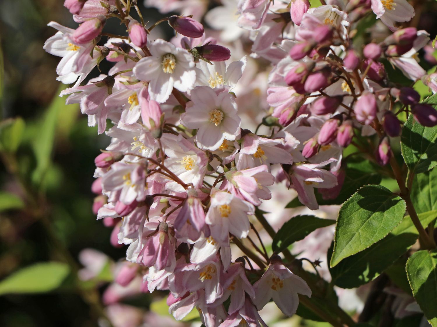 1-1,5 méter magasra növő cserje, májusban-júniusban nyílnak csésze alakú fehér virágai, a szirmok külső oldala viszont élénk rózsaszín. Felfelé törő ágrendszerű, sudár formájú, teljesen télálló, lombhullató cserje. 1 méter magasra nő. Illatos, májusban-júniusban nyílnak csésze alakú fehér virágai, a szirmok külső oldala viszont élénk rózsaszín. Napos, vagy félárnyékos helyet szereti. Humuszban gazdag talajt szereti. Rendszeres öntözést igényel, főleg virágzáskor.