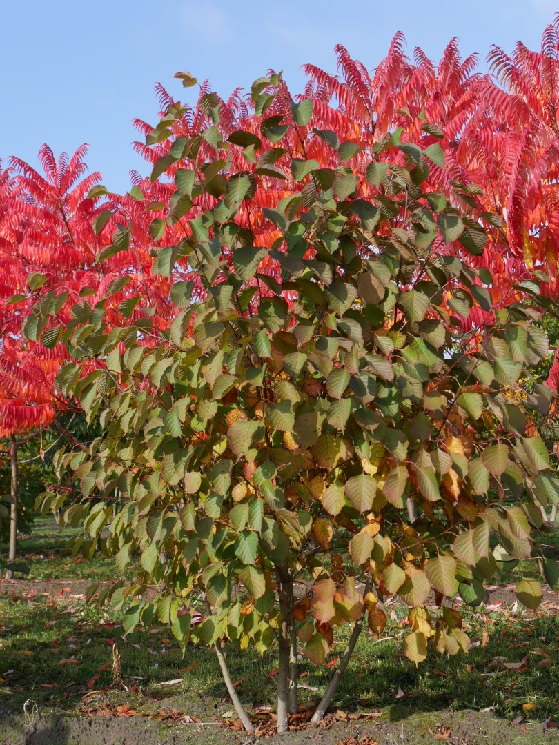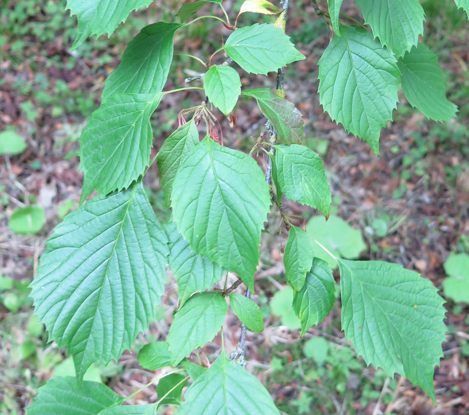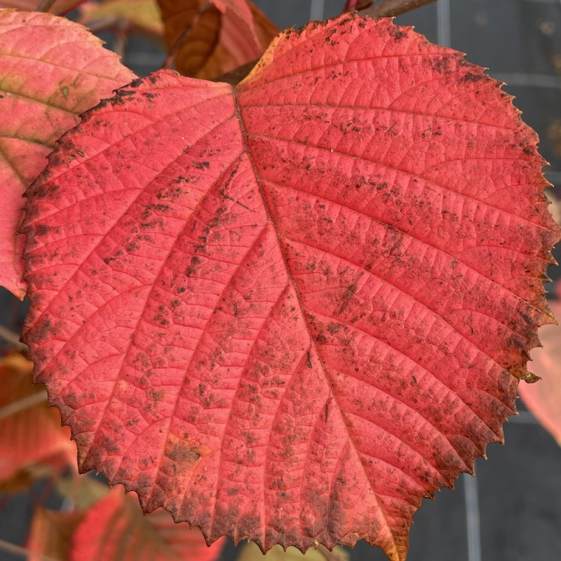 Kis és közepes méretű, általában több törzsű fa, váza alakú koronával. A gesztenyebarna fiatal gallyak tetszetős formájú, széles tojásdad leveleket viselnek, dupla fogazott szegéllyel és hosszú, elvékonyodó véggel. Fiatal levelei zöldesbarnától bronzszínig, érett levelek sötétzöldek. Az őszi szín sötétlilás, vörös lehet. A virágzás a levélfejlődés előtt következik be. A virágoknak nincs szirmuk vagy csészelevelük, csak vörös porzócsomókból és világoszöld bibékből állnak. Minden gyümölcs, amely egy-három magot tartalmaz, körülbelül 1,3 cm nagyságú, és 2-5 cm hosszú száron lóg. Bármilyen talajon nő, (kivéve a meszes talajon) ha kellően termékeny. A talajnak kellően nedvesnek, de jó vízelvezetésűnek kell lennie. Árnyékos, védett helyre ültesse.