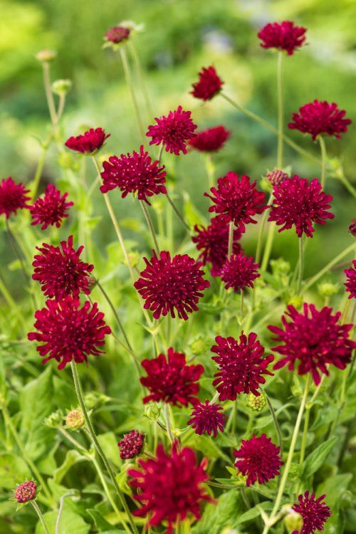 Cseresznyepiros színben pompáznak gombszerű virágai. A virágok már májusban kezdik a virágzást és őszig meg sem állnak. Az ördögszemre emlékeztető növény. Töve bokrosodó és hosszú (60-80 cm) szárakon hozza folyamatosan a virágokat, ezt segítheted azzal, hogy folyamatosan vágod. Imádják a zengőlegyek és a méhek. Az egyik legjobb alany a téli magvetéshez, mert hideg hatás nélkül szinte nem is csírázik ki.