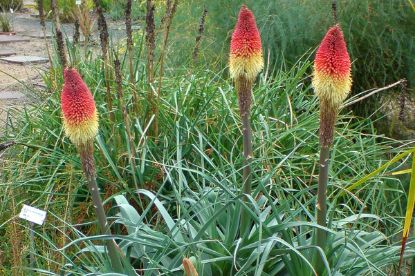 Feltűnő évelő, melyet virágjai és vonzó levelei miatt termesztenek. Csomót alkotó örökzöld évelő, keskeny, kardszerű, szürkészöld levelekkel. Kövér korallvörös virágjait, nyár végétől őszig hozza, magas, nagyon erős száron. A virágok korallvörösből citromsárgára változnak elöregedésükkor. A virágporban gazdag virágok nagyon jók a beporzóknak. Kedveli a napsütéses helyeket, talajból a jó vízelvezetésű, humuszban gazdag, enyhén savas vagy semlegest kedveli. Télen védje a hideg területeken.