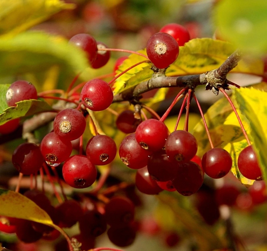 1,5-2 m magasra növő, lassú növekedésű, sűrű ágrendszerű, terebélyes, kerekded bokor vagy különböző törzsmagasságra oltott, lapított gömb koronájú, vízszintesen álló, dúsan elágazódó oldalágakkal rendelkező kis fa. Lombozatát 5-8 cm-es, hosszúkás-tojásdad, 3 karéjú, fényes, sötétzöld, ősszel sárga vagy narancssárga színt öltő levelek alkotják. Virágai piros bimbókból fejlődnek, április-májusban igen gazdagon bontja 2,5-3 cm átmérőjű, ötszirmú, aranyporzójú, szimpla, hófehér, illatos virágait. Termése kb. 1 cm-es, gömbölyded, fényes, sötétpiros, édes gyümölcsei ősszel érnek, tartósan fenn maradnak, a madarak szívesen fogyasztják. Mélyrétegű, jó vízelvezetésű, humuszban gazdag, üde, semleges kémhatású talaj ideális a számára. Fényigénye nagy, napos helyre ültessük, árnyékolását kerüljük. Vízigénye közepes, az ültetést követő évben öntözzük rendszeresen, a már megtelepedett, idősebb növények jól tűrik a szárazságot is.