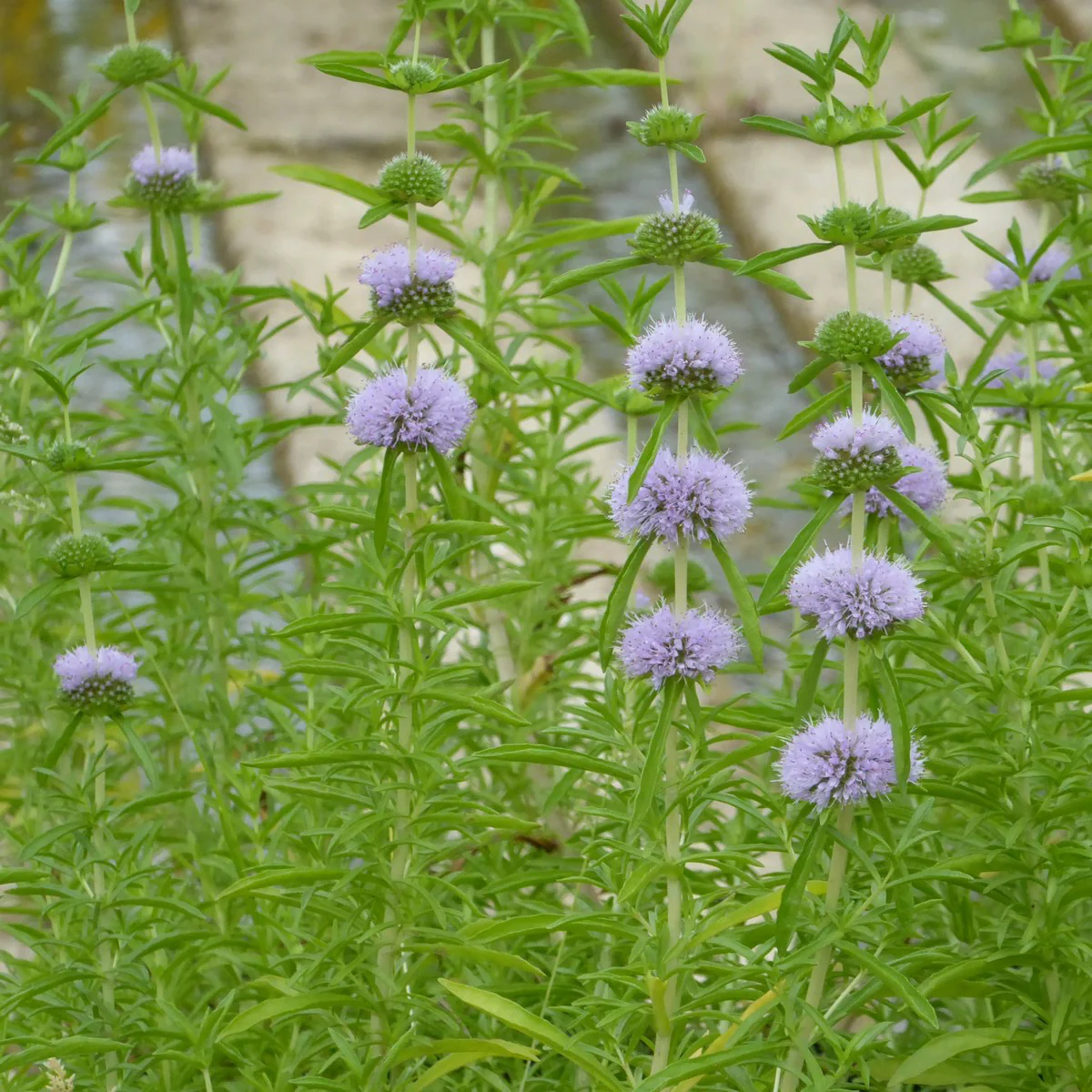 Csomóképző, félig örökzöld évelő, 30 cm magas, karcsú, lándzsa alakú, aromás levelekkel és halványkéktől a liláig terjedő virágok nyár közepétől őszig nyílnak. Tartósan nedves talajban, vagy legfeljebb 10 cm mély vízben, napon vagy félárnyékban helyen érzi jól magát. Virágzás után vágjuk vissza