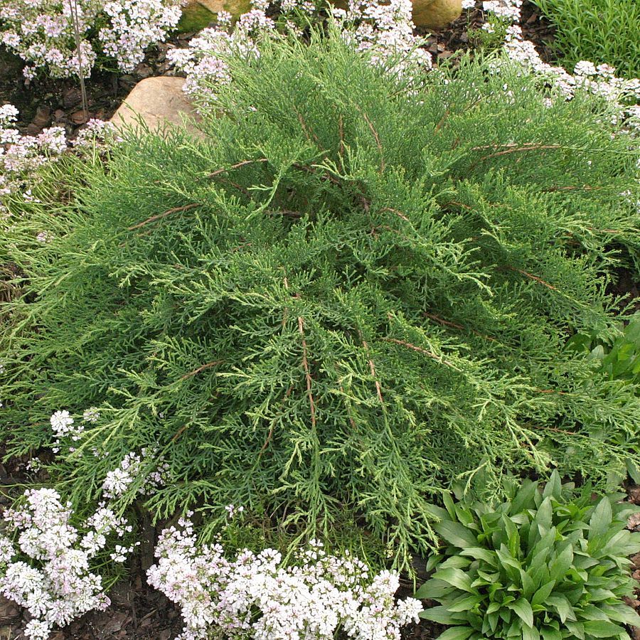 A legtávolibb keleten, a Koreától északra fekvő területeken honos, üdezöld lombszínű, elfekvő hajtású, talajtakarásra kiváló növény. Lombozata nagyon szép, szinte csipkézettnek tűnő. Hajtásai 20-30 cm vastagságban takarják be a talajt, a földhöz érő részek legyökeresednek. Lombja télen barnára színeződik, emiatt sokan nem kedvelik, pedig nagyon jó tűrőképességű, edzett növény, mely kiválóan alkalmas rézsűkre és kőedények beültetésére is és üdezöld színét tavasszal gyorsan visszanyeri.