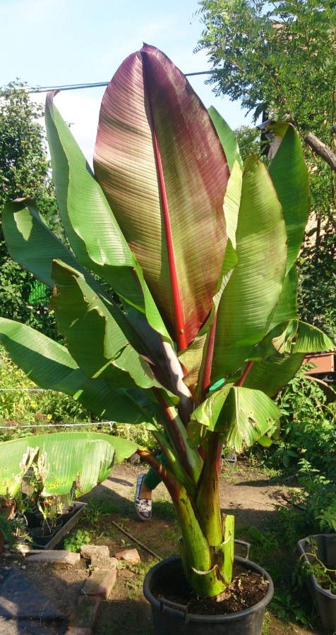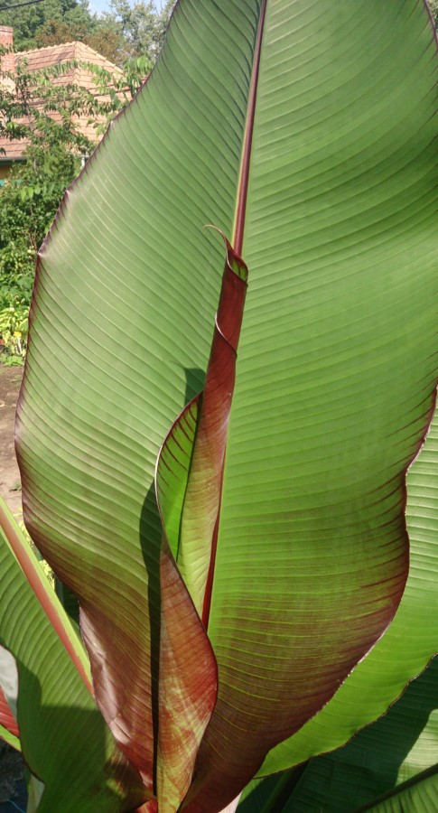 A legszebb díszbanán. Kilimandzsáró 2300 méteres magaslatairól származik. Ott akár 12 métert is elérhet 6 m hosszú levelekkel, és robusztus átmérőjű törzzsel. Sötétzöld levelének közepén futó fő ér vörös, éle bíbor színű, rövid levélnyele szintén vörös. Impozáns fajta, igazi óriás. Banánunkat célszerű az első évben edényben nevelni, és csak a következő évben, megerősödve kiültetni. Tavasszal a jó idő beálltával ültessük ki a kertbe, oda, ahol legalább 6 órán keresztül süti a nap. A nyári hőségben naponta 10–20 liter vizet igényel, minden nap bőségesen locsoljuk. Nagyon tápanyagigényes növény, körülbelül kéthetente rakjunk a tövére friss vagy érett szarvasmarhatrágyát, és kapáljuk bele a földbe, úgy, hogy a gyökerei ne sérüljenek meg. Az abesszín banánt, ha nyáron kiültettük a szabadba, ősszel ki kell ásni, és fagymentesen teleltetni.