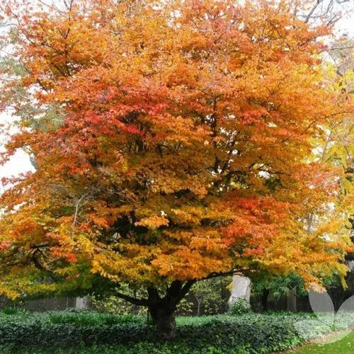 Az év minden szakában gyönyörű. Levele ovális alakú, némileg csipkézett szegéllyel. Színe zöld, burgundi vörös szegéllyel. Nyár végén bronzszínűbe, majd karmazsinvörösbe fordul. Ezt követően narancsszínűvé változik, végül fényes aranyszínűvé. Télen megmutatkozik szürkés, repedezett kérge is. Piros virágai aprók, pókszerűek, tél végén, kora tavasszal jelennek meg, még a levelek előtt. Napos helyet igényel, jó vízáteresztő, semleges kémhatású talajba ültethető. Káprázatos növény!