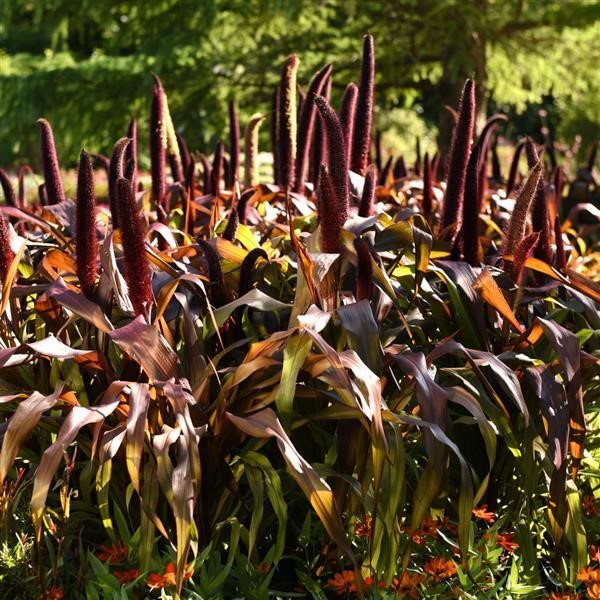 60-90 cm magasra növő bokros növekedésű, díszfű. Hosszú lándzsás bordó leveleivel markáns megjelenést biztosít a virágágyásban. Nyár végére fejlődnek ki arasznyi nagyságú kalászai.