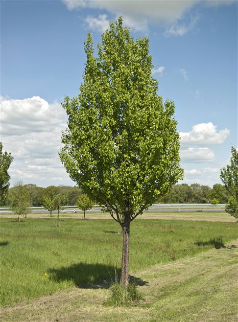Az egyik legcsodálatosabb alakú oszlopos körte, kúp alakú koronával, amely ráadásul finom gyümölcsöt is terem! Magasság 9 -12 m, szélesség kb. 5-7 m. Az öreg fák törzse sötétszürkétől gyakorlatilag feketéig terjed, mélyen barázdált és apró darabokban hámlik. A fiatal gallyak enyhén szőrösek, de hamarosan csupaszok. Szürkésbarna színűek, és néha tövisek is vannak. Oválisak, kerekek vagy elliptikusak, fényes sötétzöldek, élük élesen fogazott. Az őszi szín a narancsvöröstől a sárgásvörösig terjed. A tiszta fehér virágok áprilisban bőven nyílnak. Semleges vagy enyhén meszes talajt igényel. Száraz körülményeket tolerál.