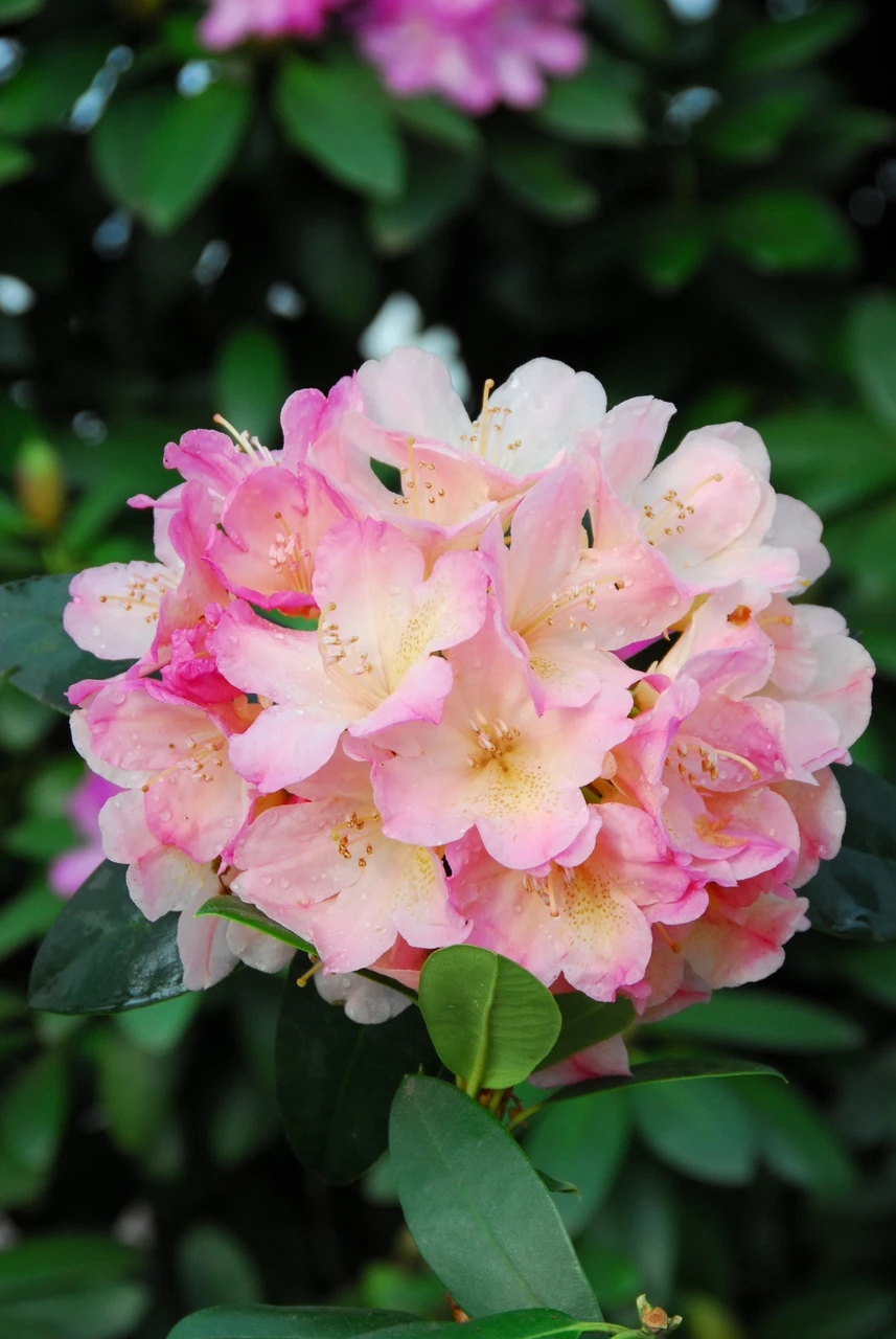 1-1,5 méter kifejlett magasságot elérő, erős növekedésű, bokros, felálló hajtásrendszerű örökzöld cserje. Levelei fényes felületűek, sötétzöldek. Tölcsér alakú, fodros szirmú virágai barack-rózsaszín és krém sárga színben díszlenek. A virágok kisebb csokrokban nyílnak, a színintenzitása az ezeket alkotó virágoknak eltérő. Jó vízgazdálkodású, tápanyagban, humuszban gazdag, savanyú kémhatású talaj ideális a számára. Kedveli a vastag avarral fedett erdei talajt. Félárnyékban fejlődik a legszebben. Mélyárnyékban felkopaszodhat. Rendszeresen, kisebb vízadagokkal érdemes öntözni, és fontos, hogy a gyökerek ne száradjanak ki. Telepítése során ügyeljünk arra, hogy szellősen ültessük, hagyjunk teret a növekedésének. Fagyzugos területeken a téli fagyok beállta előtt takarjuk, vagy ha konténerben neveljük, vigyük fagymentes helyre. A nagyon meleg élőhelyeket nem kedveli.