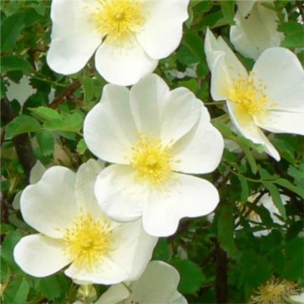 Apró kis tüskék és szőrök jellemzik. Nem túl magas, rendkívül dúsan ágazó és kúszó. Évente egyszer, de akkor rendkívül dúsan virágzik, majd ősszel apró fekete csipkebogyókkal díszíti a kertet. Virága 4 cm, fehér, sárga bibével, intenzív illatú, napos, de a félárnyékos helyen is ideális. A talaj laza, humuszos, jó vízáteresztő és enyhén savas vagy normál kémhatású legyen.