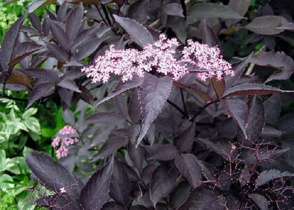 2,5-3 méter magasra növő, lombhullató cserje. A levelei bordó színűek. Virága halvány rózsaszín, illatos, nyár elején virágzik. Termése sötétlila. Talajban nem válogat. Napra, vagy félárnyékba ültessük. Közepes vízigényű bokor. Szoliternek, vagy alacsony cserjecsoportok hátteréül ültetve, kiválóan mutat bordó levélzete.