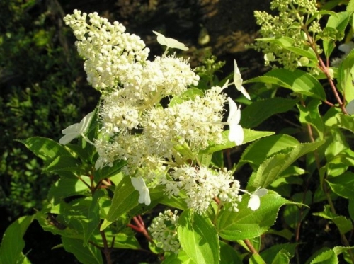 Levelei élénkzöldek, hosszúkásak, kissé érdes tapintásúak. Virágai aprók, krémfehérek, végálló, kúp alakú bugavirágzatba tömörülnek. A virágzat termékeny és meddő virágokat egyaránt tartalmaz. Júliustól-szeptemberig virágzik. Elvirágzáskor a virágzatok rózsaszínes árnyalatúvá válnak, majd megbarnulnak, elszáradnak, de továbbra is a bokron maradnak, díszítenek. Napos és félárnyékos helyre egyaránt ültethető, a meszes talajt a gömbvirágú hortenziákhoz képest jobban elviseli. Szoliterként érvényesül igazán szépsége.