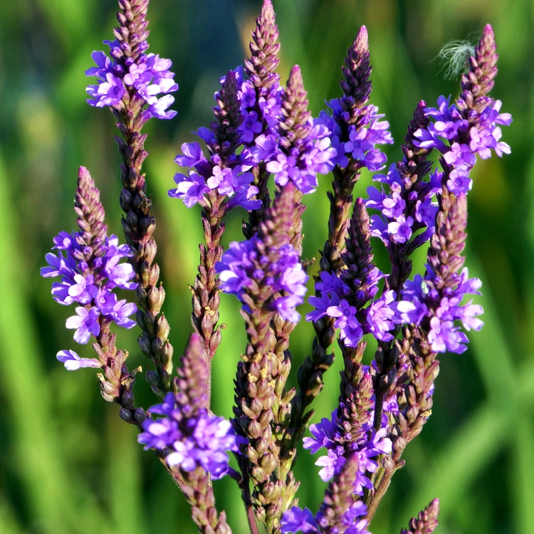 A Verbena hastata – dúsvirágú verbéna látványos, légies virágzó dísznövény. Vadvirágos, természetközeli kertekbe, ágyásokba ajánlott ültetni. Legjobb, ha csoportosan, több tövet ültetünk egymás mellé. Fagytűrő évelő. Felálló szárain hozza kis méretű füzéres virágait. Mérsékelten szárazságtűrő. Aszályos időben öntözzük. Napos helyre, jó vízátersztésű talajba ültessük.
