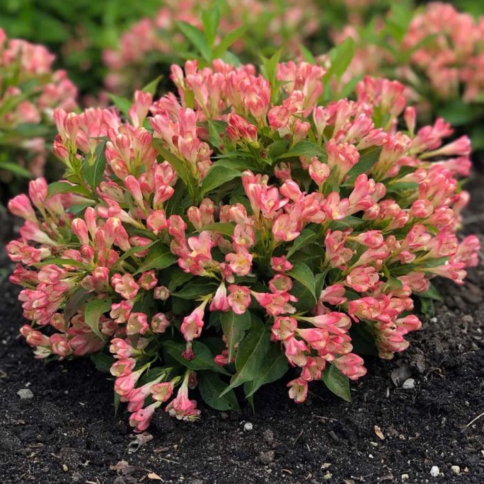 Sűrű bokros, 80-100 cm magas, lombhullató cserje. Késő tavasszal és nyár elején tömegesen nyitja tölcsér alakú, rózsaszín virágait. Másodvirágzása augusztusban és szeptemberben folytatódik. Félárnyékos, napos helyeket és a savanyú vagy enyhén lúgos, tápanyagban gazdag talajt kedveli.